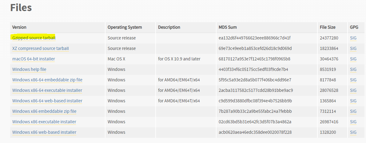 2. 링크 주소 복사 (Gzipped source tarball) : www.python.org/ftp/python/3.8.6/Python-3.8.6.tgz