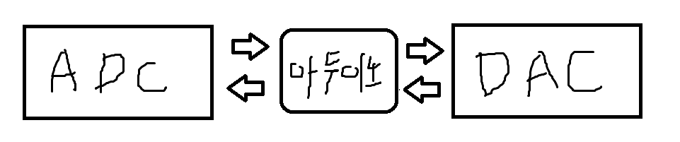 ๊ทธ๋ฆผ์ผ๋ก ํํํ๋ฉด ์ด๋ ๊ฒ ADC์ DAC๋ ์ง๊ฟ์ ๋๋ค.