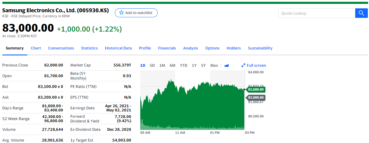 # yahoo ์์ ์ผ์ฑ ์ ์ ๋ถ๋ฌ์ค๊ธฐ
