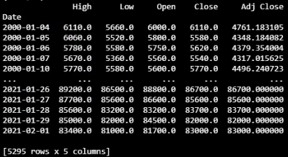 df = pdr.DataReader('005930.KS', 'yahoo', start, end)