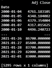 Y ๋ฐ์ดํฐ๋ฅผ Adj Close๋ก ์ ํฉ๋๋ค. (์ข