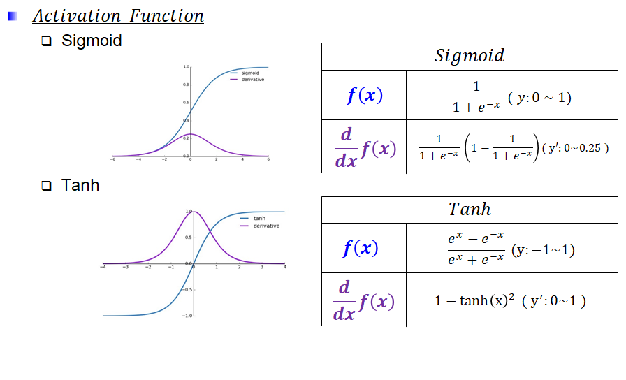 Tanh๋ 0~1์ธ Sigmoid ํ์ฅํ์ด๋ฉฐ, ๋ฏธ๋ถ์ ์ต๋๊ฐ์ด 1๋ก Vanishing Graidient๋ฅผ ํด๊ฒฐํฉ๋๋ค.