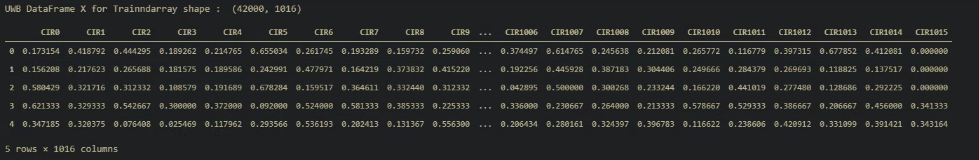 print("UWB DataFrame X for Trainndarray shape : ",df_uwb_data.values.shape)
