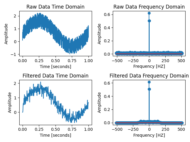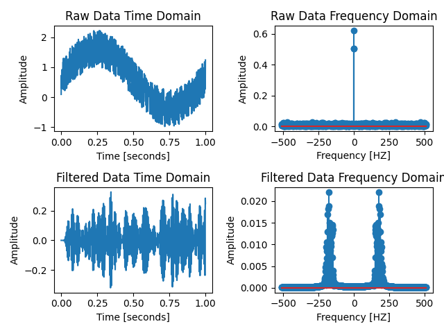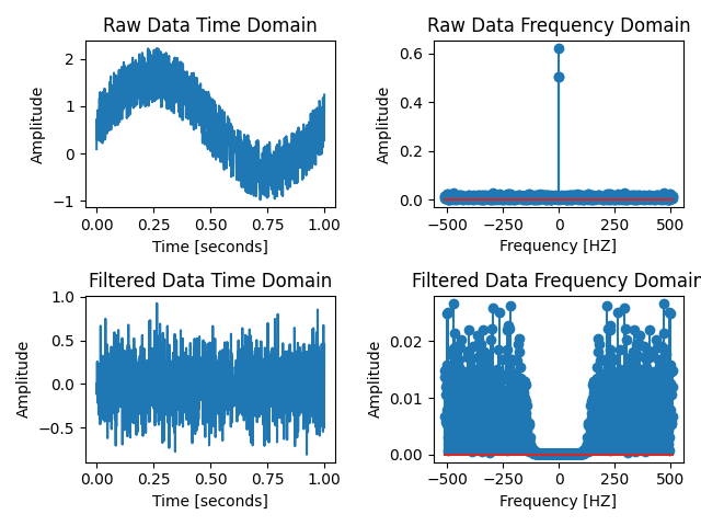 Low Pass Filter, High Pass Filter, Band Pass Filter๋ฅผ ์ด์ฉํ ์ ํธ ์ฒ๋ฆฌ์ FFT ๋ณํ์ผ๋ก ์ฃผํ์ ์์ญ์์ ํํฐ๊ฐ ์ ๋๋ก ๋์ํ๋์ง ํ์ธํ๋ ๊ฒ๊น์ง ํ์ด์ฌ์ผ๋ก ๊ตฌํํฉ๋๋ค.