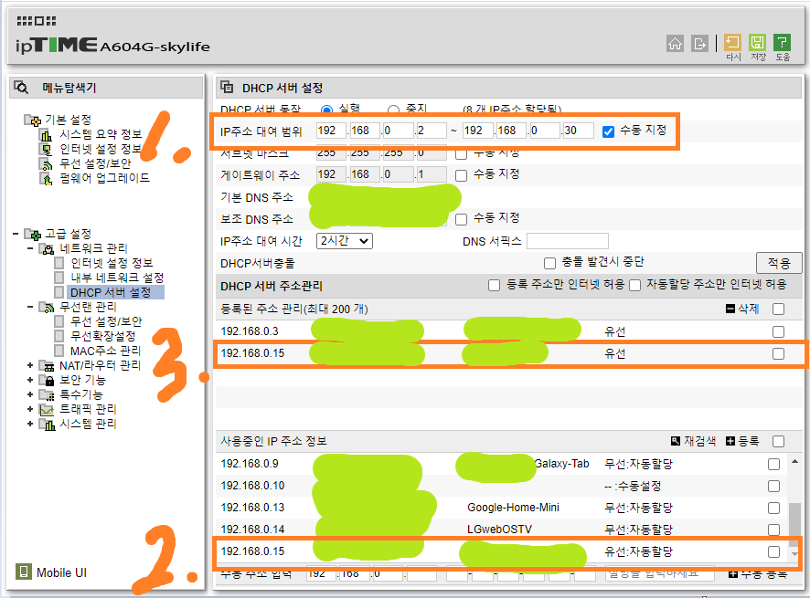 โข ํ์ฌ ์ฌ์ฉ ์ค์ธ IP๋ฅผ ํด๋ฆญํ๋ฉด ์๋์ผ๋ก IP, mac ์ฃผ์๊น์ง ์ ๋ ฅ๋๋ ์ค๋ช ์ ์์ ์ด ๊ตฌ๋ณํ ์ ์๊ฒ ์ ๊ณ ์๋ ๋ฑ๋กํฉ๋๋ค. ๊ทธ๋ฌ๋ฉด ๋ฐ์ค 3์์์ฒ๋ผ ๋ฆฌ์คํธ์ ์ ์ฅ๋์ด ๊ณ ์ ๋ฉ๋๋ค.