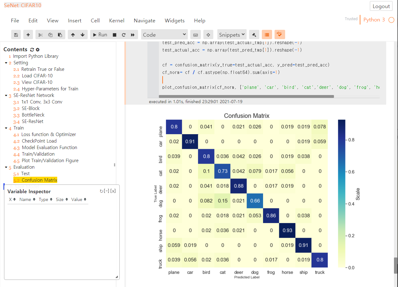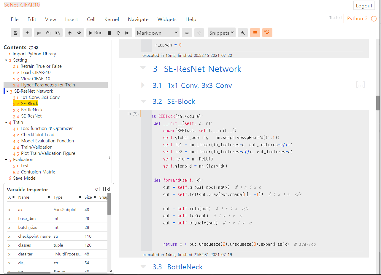 Pytorch GPU๊ฐ ์ค๋น ๋์์ผ๋, ์ ์ ๋ง๋ค์ด ๋ Se-ResNet์ ์ด์ฉํ์ฌ CIFAR-10 ๋ฐ์ดํฐ ์ ์ ๋ถ๋ฅํ์ต๋๋ค.