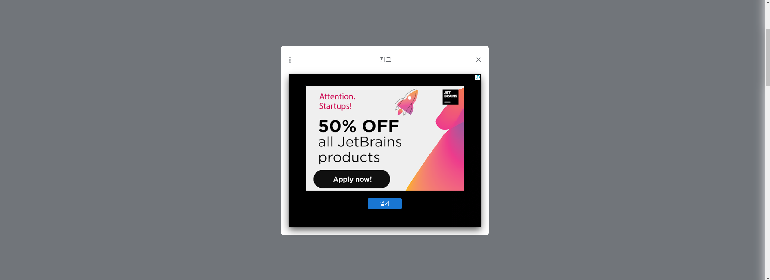 그런데 평소처럼 구글링 중 아래 사진과 같은 전체 광고가 뜨는 블로그를 보았습니다.