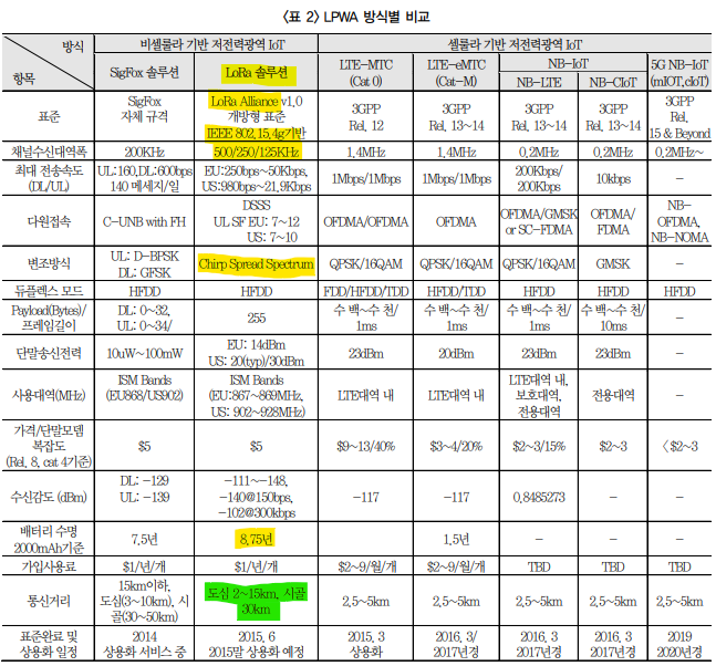 ( 한국에서는 대표적으로 LoRa를 다루는 곳은 SKT 텔레콤과 한전 KDN이 있습니다. )