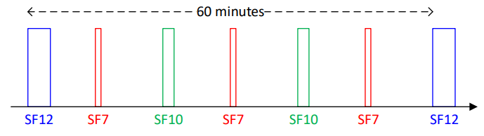 한 시간에 SF12로 한 번, SF10로 두 번, SF7로 세 번 씩, 위와 같이 변경하면서 전송하는 방식입니다.