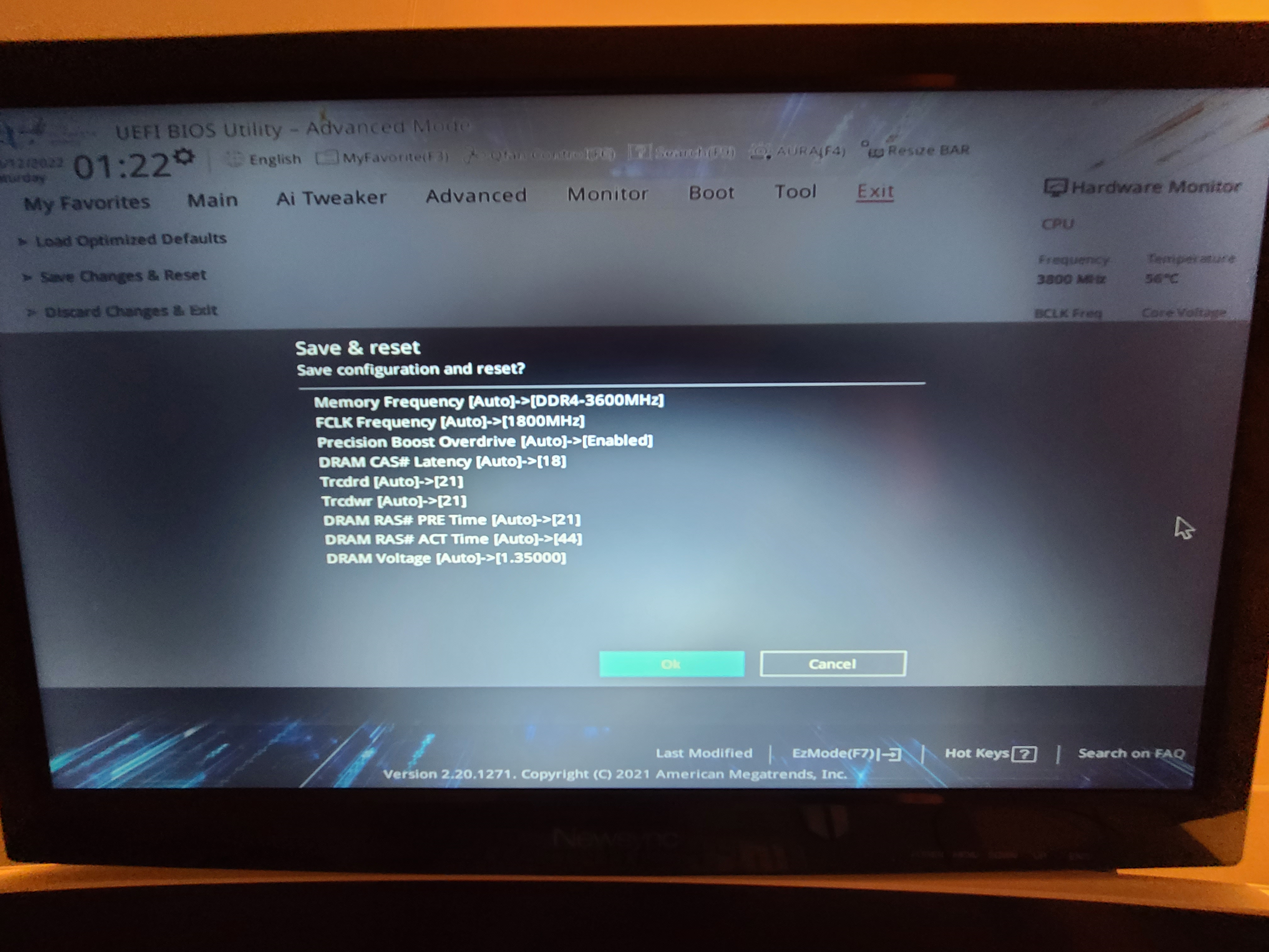 램을 3200MHz 8Gx2에서 삼성 3200MHz A다이 16Gx2로 교체하고, B450M-Pro gaming 메인보드 바이오스를 업그레이드 시켰다.