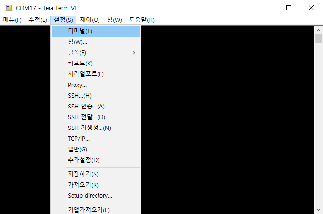 4. ์ด์ ํฐ๋ฏธ๋์ ์ค์ ํด์ผ ํ๋ค. [์ค์ ] - [ํฐ๋ฏธ๋]์ ํด๋ฆญํ๋ค.