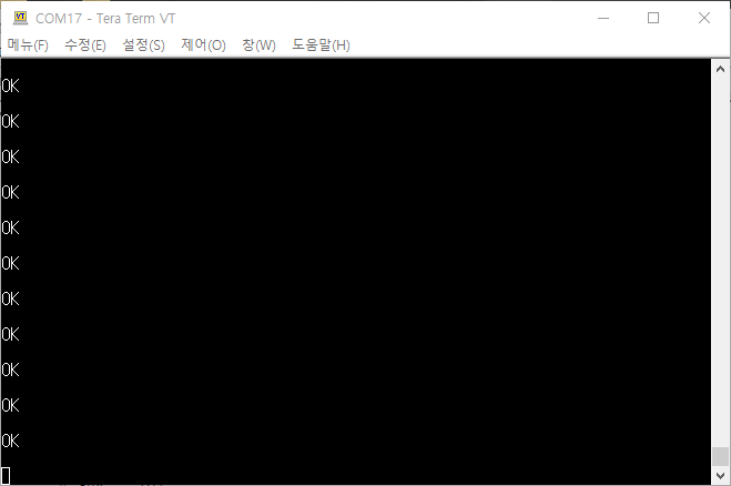 AT command๋ฅผ ์ฌ์ฉํ๋ ๋ชจ๋ ๊ฐ์ ๊ฒฝ์ฐ, ์ฒ์ ํ ์คํธ๋ฅผ ์ํด "AT"๋ฅผ ์ ๋ ฅํ์ฌ "OK"๋ฅผ ํ์ธ๋ค. ์ฌ๋ฐ๋ฅด๊ฒ UART to USB์ HC-05, HC-06 ๋ชจ๋์ด ์ฐ๊ฒฐ๋๋ค๋ฉด, ํฐ๋ฏธ๋์ OK๋ผ๊ณ ์ถ๋ ฅ๋๋ค. ๋ง์ฝ ์๋ฌด ๊ฐ๋ ์ถ๋ ฅ๋์ง ์๋๋ค๋ฉด, ์ ๊ณผ์ ์ ์ฒ์ฒํ ๋ค์ ํด๋ณธ๋ค.