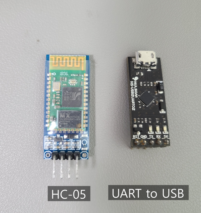 HC-05๋ฅผ ์ค์ ํ๊ธฐ ์ํด HC-05์ UART to USB๋ฅผ ์ฐ๊ฒฐํด์ผ ํ๋ค.