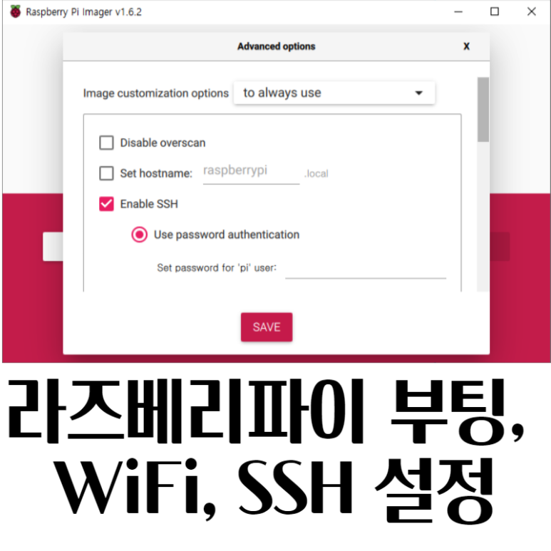 ์ถ์ฒ :Raspberry Pi imager๋ฅผ ์ด์ฉํ์ฌ Raspberry Pi SSH ์ค์