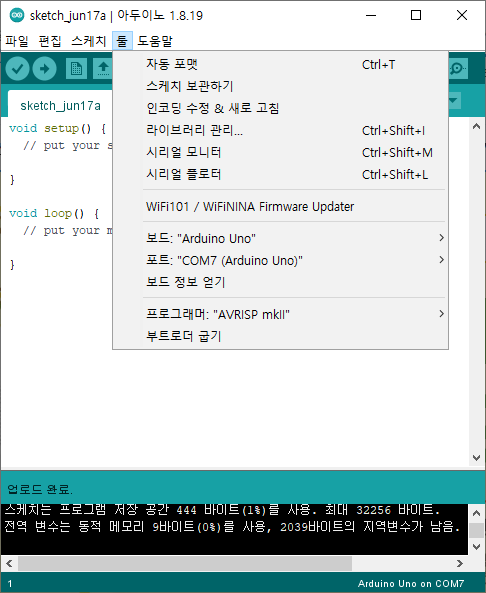 ์๋์ด๋ ธ ์ฐ๋ ธ์ USB-Serail ๋์ ISP ์ฅ์น๋ฅผ ์ด์ฉํด ์ ๋ก๋๋ฅผ ํ ์์ ์.