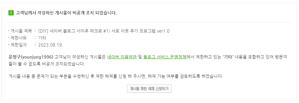 ์ค๋๋ง์ ๋ค์ด๋ฒ ๋ธ๋ก๊ทธ๋ฅผ ๋ค์ด ๊ฐ๋๋ฐ ์๋์ ๊ฐ์ด ๋ค์ด๋ฒ์ธก์ ๊ฒฝ๊ณ ๋ฅผ ๋ฐ์์ต๋๋ค.