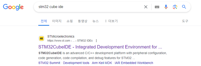 ํน์ ๊ตฌ๊ธ์์ STM32 CUBE IDE๋ก ๊ฒ์ํ์ฌ ๋งจ ์ฒ์ URL์ ํด๋ฆญํ๋ค.
