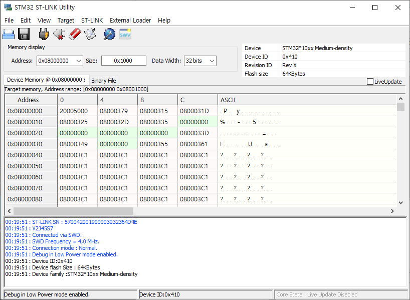 ST-LINK가 올바르게 연결됐다면, 아래와 같이 확인할 수 있다.