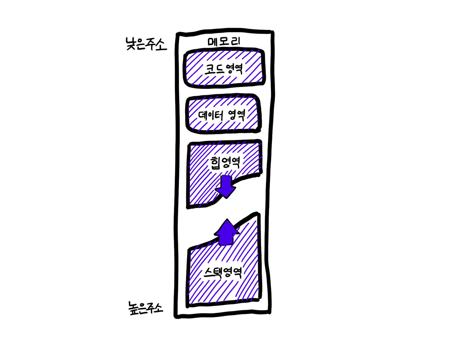 - ์คํ(Stack): ํจ์ ํธ์ถ ์ ์์ฑ๋๋ ์ง์ญ ๋ณ์๊ฐ ์ ์ฅ๋๋ ์์ญ์ ๋๋ค. ํจ์๊ฐ ์ข ๋ฃ๋๋ฉด ์๋์ผ๋ก ๋ฉ๋ชจ๋ฆฌ๊ฐ ํด์ ๋๋ค.