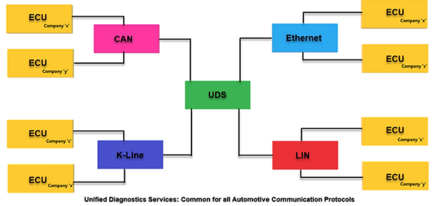 UDSλ μ°¨λ λ΄λΆ λ€νΈμν¬(CAN, LIN, FlexRay λ±)λ₯Ό ν΅ν΄ ECU κ°μ ν΅μ μ κ΄λ¦¬νλ€. μ°¨λμ μ μ₯ SW κ°λ° μ, UDSλ₯Ό μ¬μ©νμ¬ ECU μνλ₯Ό λͺ¨λν°λ§νκ³ μ μ΄ν μ μμΌλ©°, ν΅μ μ€λ₯ λ°μ μ μ΄λ₯Ό κ°μ§νκ³ μμ νλ λ° μ¬μ©λλ€.