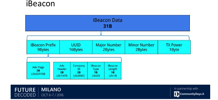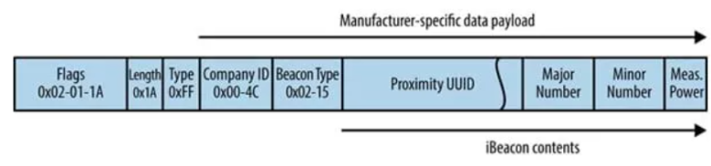 iBeacon์ ํจํท์์๋ ๋ค์ํ ๊ฐ์ ์ ์ ์๋ค.