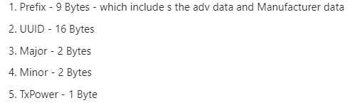 iBeacon ๋น์ฝ packet format (๋ชจ๋ BLE ๋น์ฝ์ด ์ ํจํท ํฌ๋งท์ ๋ฐ๋ผ๊ฐ์ง ์๋๋ค.)