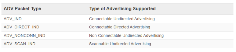 ๋ณดํต ๋น์ฝ์ ํ์ ์ ADV_IND๊ฐ ์ผ๋ฐ์ ์ด๋ค. ํน์ ์ค์ ์ฅ์น๋ฅผ ํน์ ํ์ง ์๊ณ ๋ชจ๋ ์ฃผ๋ณ ๊ธฐ๊ธฐ์ ์ฐ๊ฒฐํ ์ ์๋ค.