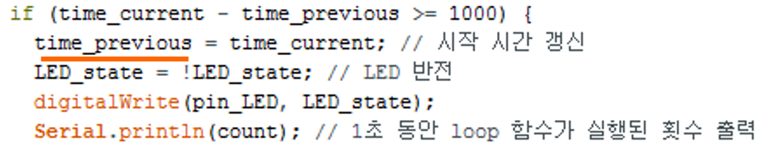 loop() ν¨μκ° λ°λ³΅λλ©΄μ νμ¬μ λ°λ¦¬μ΄λ₯Ό millis() ν¨μλ‘λΆν° κ³μ μ λ°μ΄νΈνλ©° μ΄μ λ°λ¦¬μ΄ κ°κ³Ό μ°¨μ΄λ₯Ό λΉκ΅νλ λ°©μμΌλ‘ delay() ν¨μμ λκ°μ κΈ°λ₯μ ν μ μμ΅λλ€.
