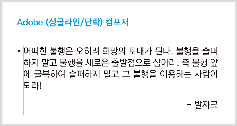 하지만 단락에서 Adobe(단락/싱글라인)컴포저로 변경할 경우