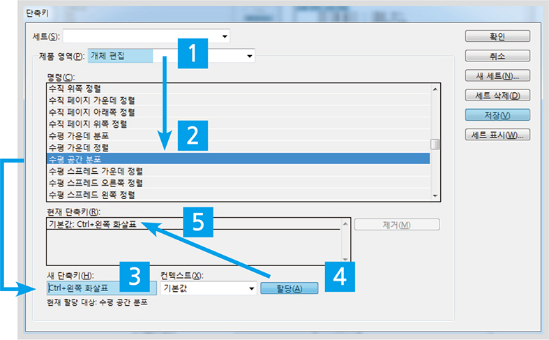 [편집] - [단축키]를 클릭하여 대화상자가 열리면