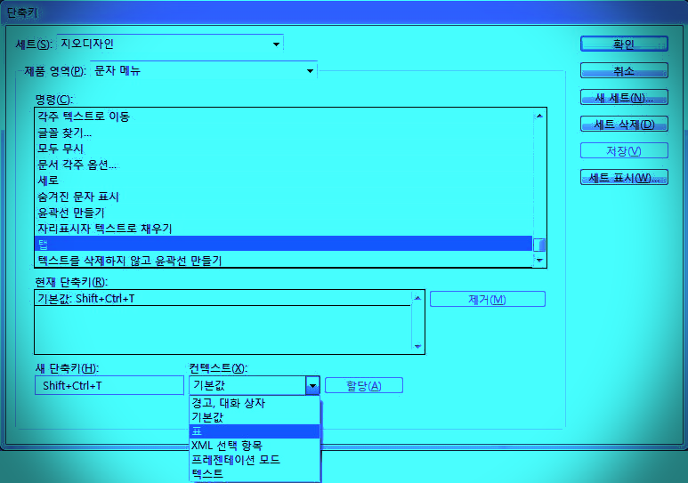이제부터는 표안에서 새롭게 지정한 단축키를 누르면