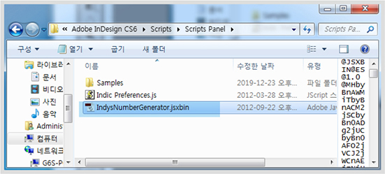 이 폴더에 다운 받은 IndysNumberGenerator.jsxbin를