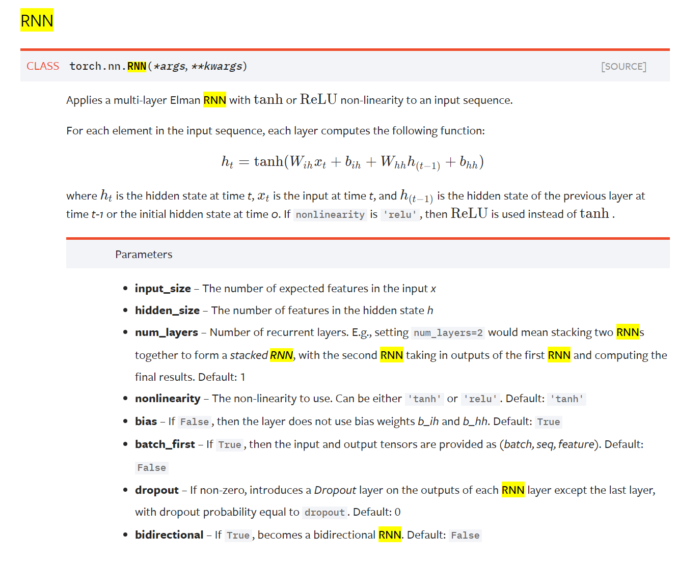 hidden_size는 nn.RNN을 걸치면 나오는 Output으로 볼 수 있으며, 위 그림의 주황색 박스입니다.