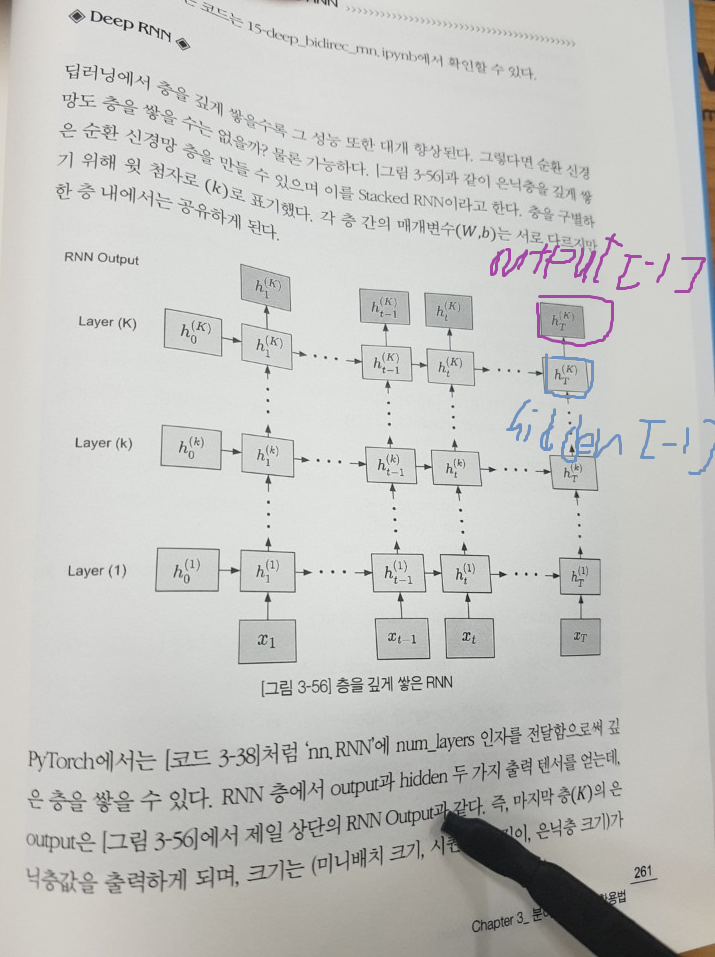 output : [sequence, batch_size, hidden_size] 에서 Sequence의 가장 끝을 의미합니다. (보라색 상자)