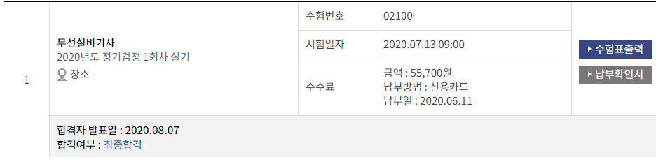 2020년 6월 5일 합격 통보를 받고, 약 5주간 무선설비기사 실기를 준비하였습니다.