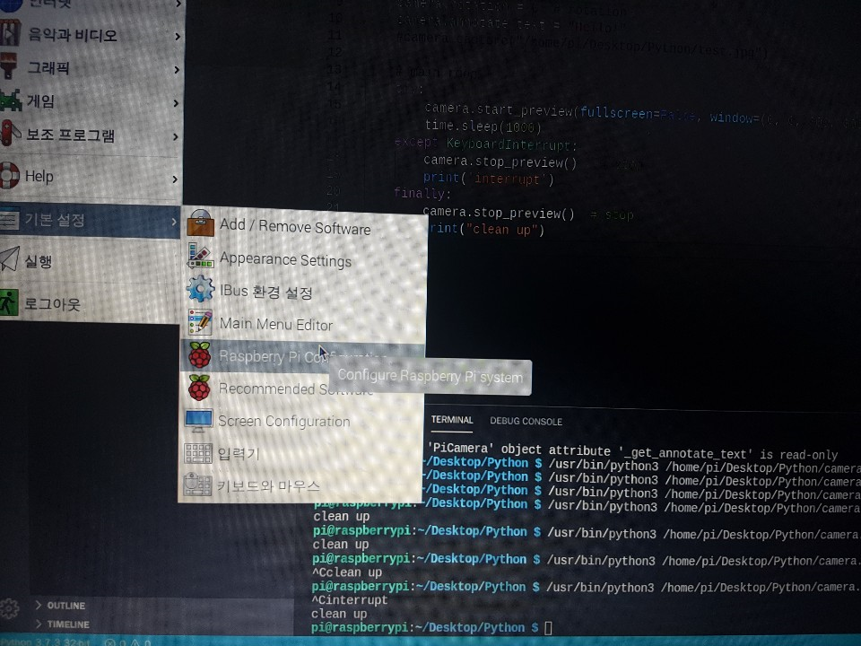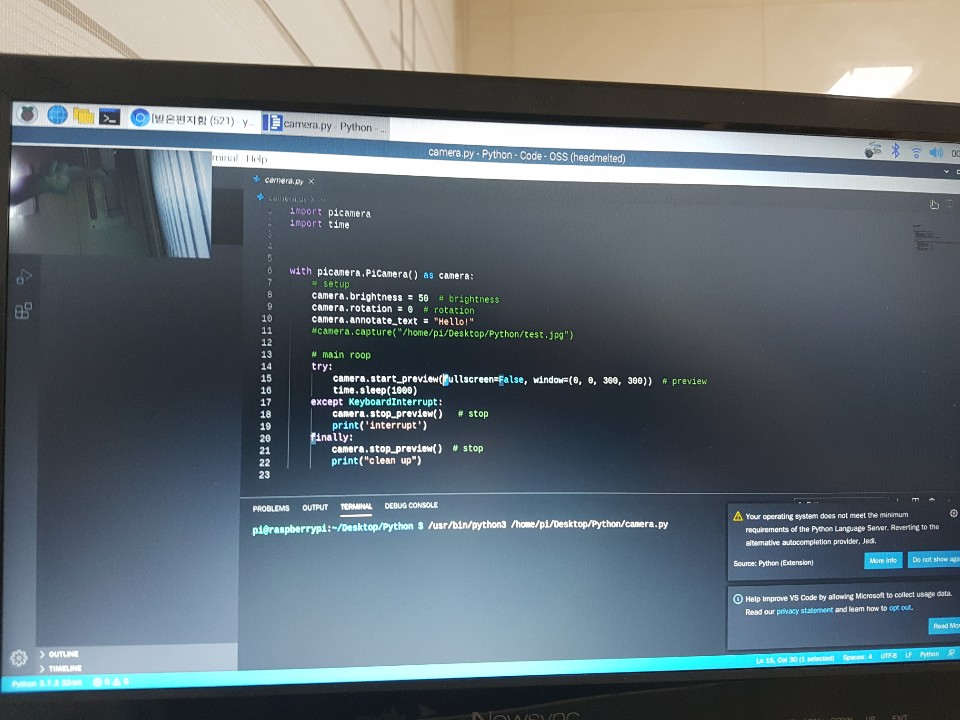 camera.start_preview(fullscreen=False, window=(0, 0, 300, 300)) # ์นด๋ฉ๋ผ ๋ฏธ๋ฆฌ๋ณด๊ธฐ