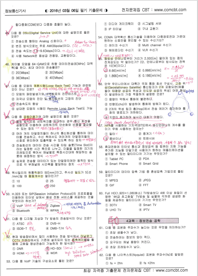 확실히 무선설비기사를 따놓으니 정보통신기사가 수월합니다. 공부 안하고 문제푼거 치고는 괜찮은 점수인 것 같습니다.