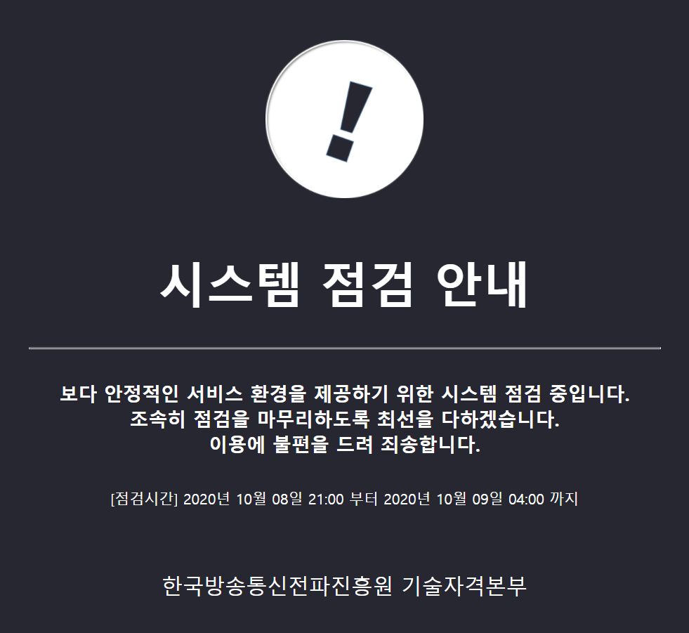 점수를 확인하고 싶어서 KCA에 들어가 보니 점검 중입니다.