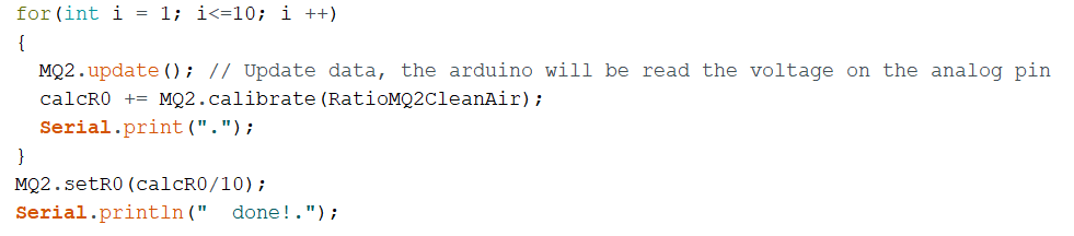 calcR0 += MQ2.calibrate(RatioMQ2CleanAir);
